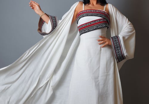Hand embroidered kaftan with cardigan